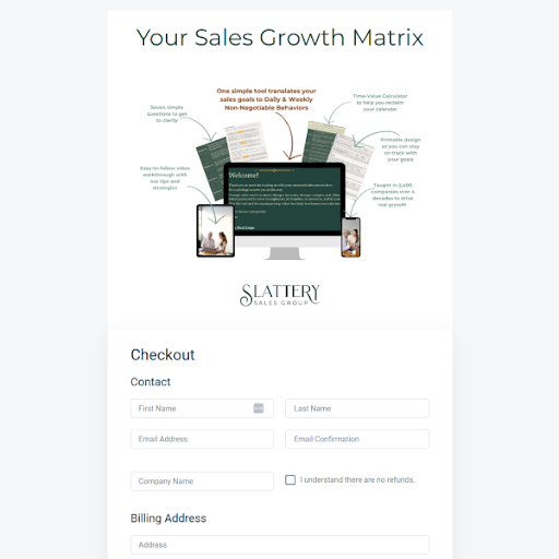 (If you order more than one Sales Growth Matrix for your team, we'll follow up with you to get the others' email addresses. Email is how the tool will be delivered.)